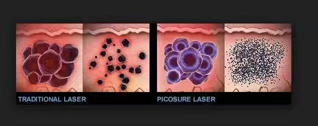 Picosecond laser uses very short pulse output mode, instead of thermal effect, by the principle of light mechanical shock wave, pigment is “shattered” into finely granular via focused energy, are more likely to be absorbed by the body metabolism. Picosecond laser will be to minimize the side effects of thermal effect, can achieve the goal of almost solve all kinds of pigment spots, is better than traditional laser spot whitening effect.